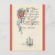 The words on this postcard say 'A Merry Christmas and a Bright and Happy New Year.' There is a sail boat at the bottom of the postcard.