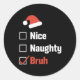 Christmas Nice Naughty Bruh Funny Xmas List T Shir Classic Round Sticker