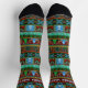 These pretty holiday crew socks have an original festive pattern made to resemble a knitted Christmas sweater. It includes reindeer, trees, mountains, snowmen, mistletoe, snowflakes, birds and more. The colours are all pretty shades of red, green, blue and golden yellow. Use the easy template to add your personalised text, such as your name. This unique, custom Christmas design is perfect for the holiday season.