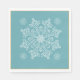 Shown in an white napkin, these paper napkins have ivory-white Nordic snowflake patterns on them over a tropical pool blue background and a matte gold-colour border.