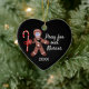 Christmas Nurse Covid Face Mask Gingerbread Man Ceramic Ornament makes a perfect keepsake gift idea for a nurse. Both sides of the ornament are designed with a cute gingerbread man wearing a face mask, stethoscope and holding a candy cane. The quote is "pray for our nurses" in white script lettering on customisable black background. Customise year by clicking personalise option.
