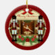 A beautiful Christmas Nutcracker Merry Christmas art keepsake ornament! This lovely round double sided ornament is a wonderful addition to your Christmas decor and ornament collection! It features two large nutcrackers on each side of the ornament and a dancing holiday ballerina art in the centre, also green garland with red and gold ornaments and a poinsettia flower on the bottom. The ornament is accented with a red and gold trimmings and a digital art bow on top. The frame area of the ornament is a festive red snowflake pattern. A wonderful holiday addition to your collection, or a gift for a friend, or family member will treasure! For more holiday ornaments, home decor, and keepsakes please visit our shop!