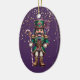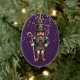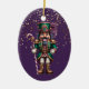 This holiday ceramic ornament is shown with a festive Christmas nutcracker print.