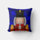 Christmas Nutcracker Face, Red (red clothing)-is a digital graphic art design (drawing). This design is one of three in the collection. The nutcracker is wearing red and gold clothing with gold and black embellishments. He sports a black top hat with gold embellishments. He has hand drawn hair and a bit of blush on his cheeks. I placed the nutcracker on a blue bokeh background. The bokeh is on both sides of the pillow. The nutcracker face is on the front only. This pillow is available in assorted colours. Feel free to personalise your Nutcracker gift with text if you like.