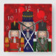 Christmas Nutcracker Trio-is a digital graphic art design of Nutcracker Soldiers. There are three nutcrackers in the collection. All three are on this clock together. One nutcracker is dressed in red and gold with black and gold embellishments. The centre nutcracker is dressed in blue and white with gold embellishments. The third nutcracker is dressed in green and white with silver metal (metal look) embellishments on the shirt top. I've place all three nutcrackers together on a red Christmas bokeh pattern. See my Zazzle Store Galleries to view the nutcrackers sold separately. The number on the clock are white.