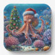 Christmas Octopus Wearing a Santa Hat Paper Plate