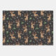 Christmas Oh Deer Reindeer Santa Hat Snow Black Wrapping Paper Sheet