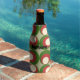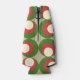 This bottle cooler has a Christmas mid-century modern design of three circles layered atop each other; one green, one red, and one white. Each circle is then turned 90 degrees to make a square of circles. Like the design but want other colours? Message me.