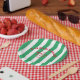 These paper plates are perfect for your Christmas parties, celebrations and gathering on the beach... Green cabana stripes with red custom beach logo. Personalise with the beach location and year. The perfect addition to your Christmas gatherings! Matching accessories available in the Christmas On The Beach Green Cabana Stripe Collection.