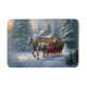 Santa driving a one-horse sleigh to deliver Christmas presents in a small town