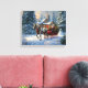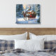Santa driving a one-horse sleigh to deliver Christmas presents in a small town