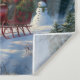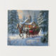 Santa driving a one-horse sleigh to deliver Christmas presents in a small town