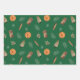 Christmas Orange Spice, Pine, Pinecones Green Wrapping Paper Sheet