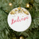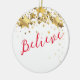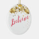 This Christmas ceramic ornament is shown with a holiday believe stars print.