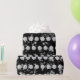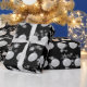 White Christmas ornament ball with snowflake pattern on black background.