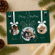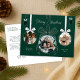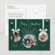 Spread holiday cheer with this festive postcard featuring hand-drawn bows that crowns three of your favourite photos in circular frames - creating the look of festive Christmas ornaments. The elegant green and white holiday postcard includes 'Merry Christmas' in a handwritten script font and your custom family name; on the back you can add a custom message and a return address.