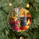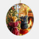 Cute little bunny couple decorating their Christmas tree in their cosy cottage is the scene on this adorable Christmas ornament.