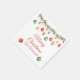 Festive Christmas napkin featuring a holiday garland and ornament baubles. Perfect for a Christmas ornament exchange party. The words can be changed to suit your own details or requirements