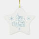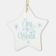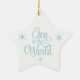 Star ornament is shown in blue and white with a stars Joy to the World print.