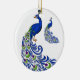 Christmas Ornament shown in a round shape with a white background with a pretty peacocks print.