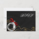An elegant Christmas party RSVP card featuring a silver ornament, red bow and gold tassels on a black background. Formal and classy -- perfect for a corporate holiday party, business holiday party, company holiday party and more! Designs are flat printed illustrations/graphics - NOT ACTUAL EMBELLISHMENTS.