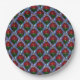 A pretty red and green bauble ornament against a blue stained glass style pattern decorates these seasonal paper plates. Perfect for your holiday party. AI-generated by IveyCottage.