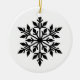 This ceramic Christmas ornament is shown here with a holiday black and white snowflake print.