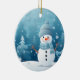 Christmas Ornament is shown in a winter snowman scene.