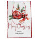 Christmas ornament with red bow and fir branches holiday Medium Gift Bag. It features a red Christmas ornament with a red bow and branches of fir and Merry Christmas typography. The sides are covered with a red pattern with white snowflakes.
