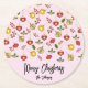 Christmas Ornaments Festive Greenery Pink Round Paper Coaster