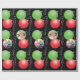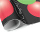 This Christmas wrapping paper features two traditional round Christmas ornaments, one red and one green in a pattern on a black background and the words Merry Christmas. Five of the ornaments across the length of the paper are a customisable photo frames, allowing you to add your favourite family photos.