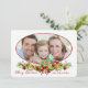 A beautiful Christmas card with an oval window for your favourite photo. It features a holiday garland of holly, berries, red ribbons and tree and snowman cutouts. The words "Merry Christmas" are also printed. Want to save money? Print this design on the basic, square corner paper.