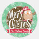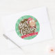 Christmas Owl; Winter; Green & White Snowflakes Classic Round Sticker