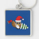 Christmas Owl with Axe and Snowy Pine Tree Key Ring