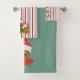 A family of wide eyed cartoon owls (and Santa Owl!) decorate each one of this cute three piece Christmas towel set. The bath towel is solid teal, while the hand towel and wash cloth are matching teal, red, and white striped. Each owl image is distinct, colourful, and bright.