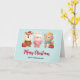 Christmas card with a cute illustration featuring a bunny, a bear and a deer all dressed in festive gear. Adorable and whimsical.