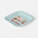 Paper plates with a cute illustration featuring a bunny, a bear and a deer all dressed in festive gear. Adorable and whimsical.