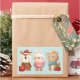 Stickers with a cute illustration featuring a bunny, a bear and a deer all dressed in festive gear. Adorable and whimsical.