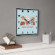 A clock with a cute illustration featuring a bunny, a bear and a deer all dressed in festive gear. Adorable and whimsical.