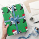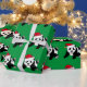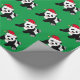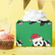 Cute Christmas animal wrapping paper featuring a beautiful panda bear wearing a red santa hat on green paper. Pretty holiday wrapping paper.