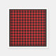 These standard style napkins are shown in the cocktail size. Shown with a white border around the perimeter, an inner black border and the center is red and black buffalo plaid.