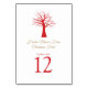 Simple red bare winter tree with a golden coloured partridge bird holiday Christmas graphic table numbers. Customise with your own event. A great idea to help guests find their seats at your Christmas holiday or special festive party or event. You must change the number to each number that you need and add them one at a time. Art and design by Sarah Trett for www.mylittleeden.com