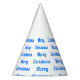 Throw a modern Christmas Party with matching products with blue Christmas decorations like this party hat.