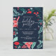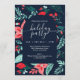 Christmas Party Blue Botanical Red Floral Invitation