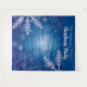 A winter tapestry for a fun holiday season and Christmas parties, dinners. A blue background with large white snow flakes, crystals. Personalise and add your family name. The text: Christmas Party is written in white with a modern hand lettered style script. Can be used as a welcome sign, party wall decoration or as photo booth backdrop.