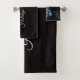 Christmas Party Blue Tree Shiny Black Elegant Bath Towel Set. Unique, beautiful, stylish design. Easy to be personalised. Font style, size and colours can be changed. Matching items are available.