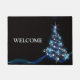 Christmas Party Blue Tree Shiny Black Elegant Doormat