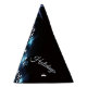 Christmas Party Blue Tree Shiny Black Elegant Party Hat. Unique, beautiful, stylish design. Easy to be personalised. Font style, size and colours can be changed. Matching items are available.