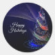Christmas Party Colourful Tree Navy Blue Rustic Classic Round Sticker