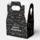 This is a modern black and white Christmas party favour box in a fun festive pattern with Merry Christmas in a bold typography. The pattern features cute watercolor graphics of coloured string lights and the script text falala.